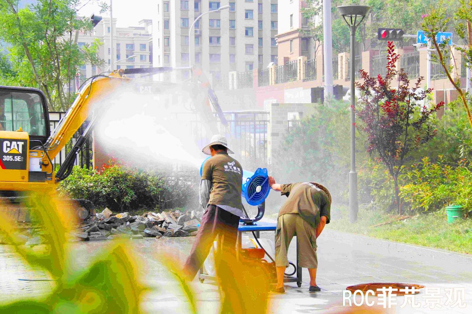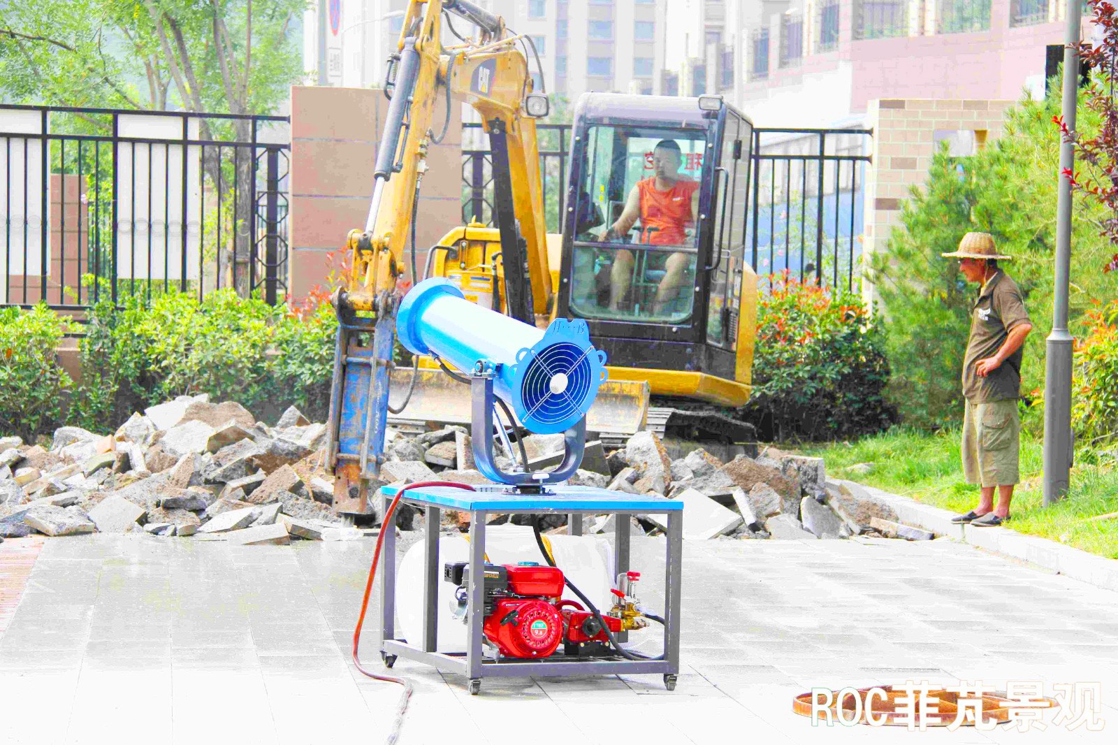 为了响应国家环保政策,我公司配置雾炮机,雾炮机不仅可以除尘降尘,还具有增湿降温作用,改善工地施工环境。