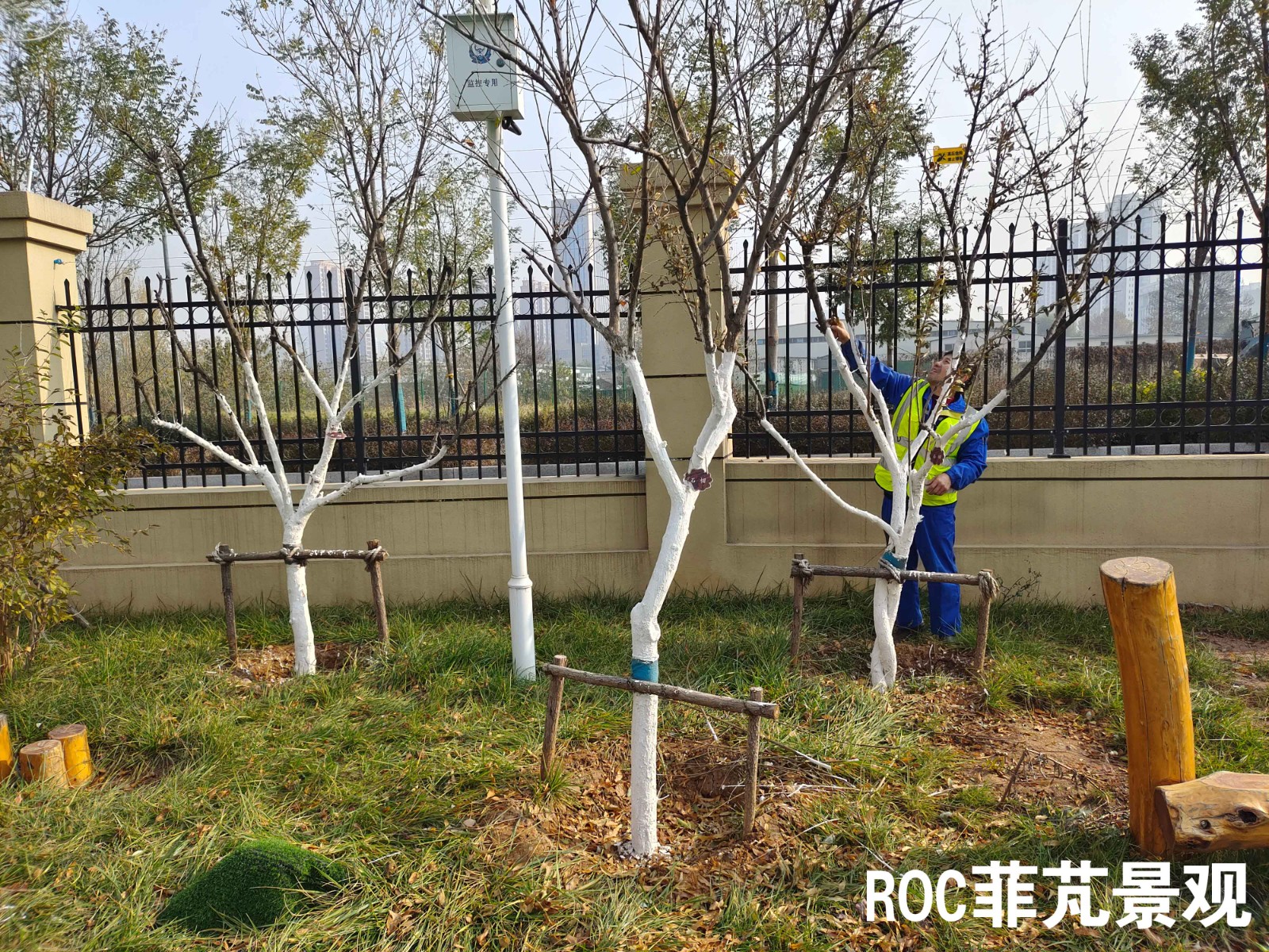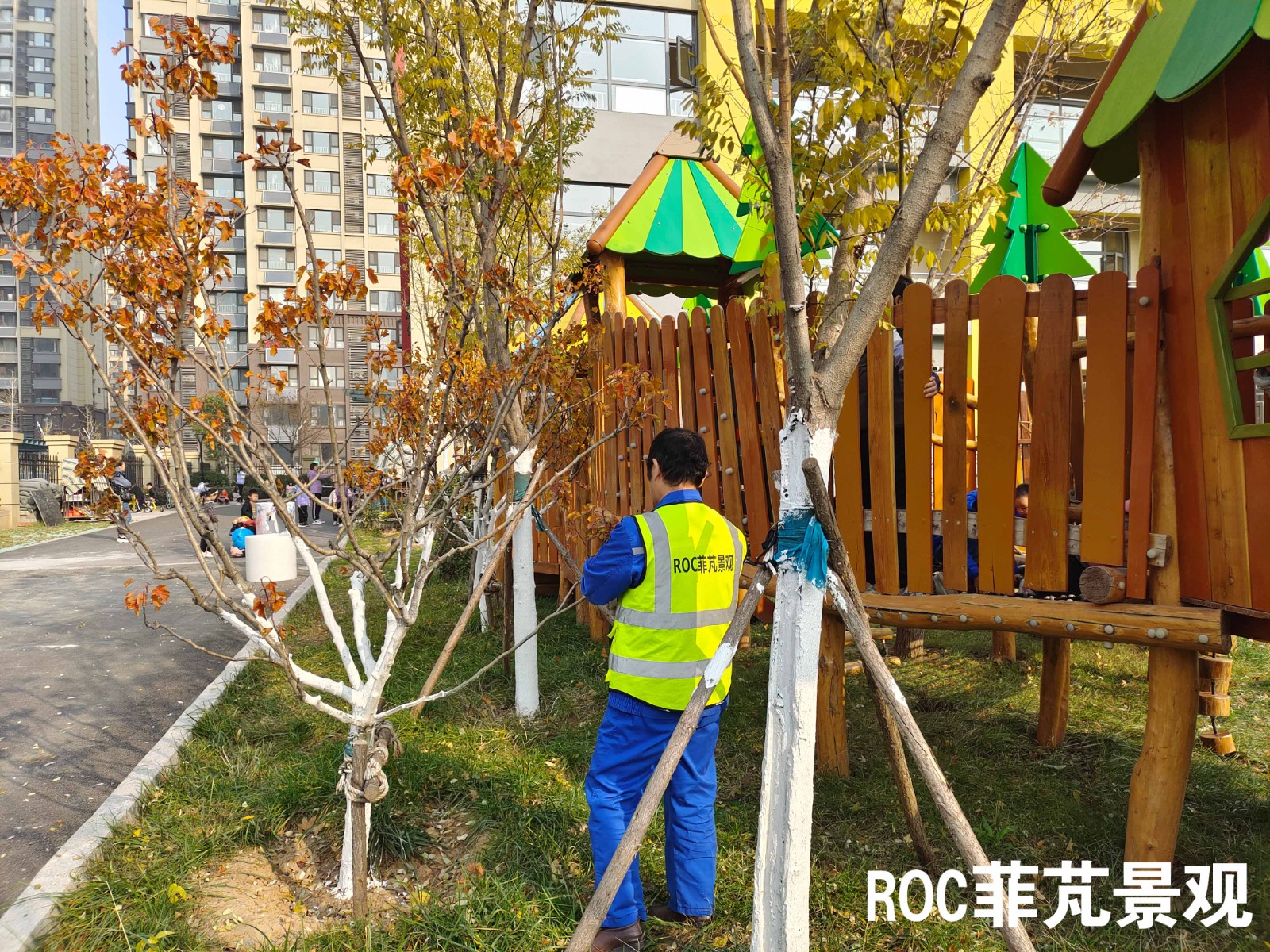 进入初冬时节,天气越来越冷,园林里各类绿化植物也陆续进入休眠期。为保证冬季植物养护效果,维护绿化景观,近日,我公司根据养护月历结合当前养护工作安排,集中对项目园林开展冬季防寒行动。