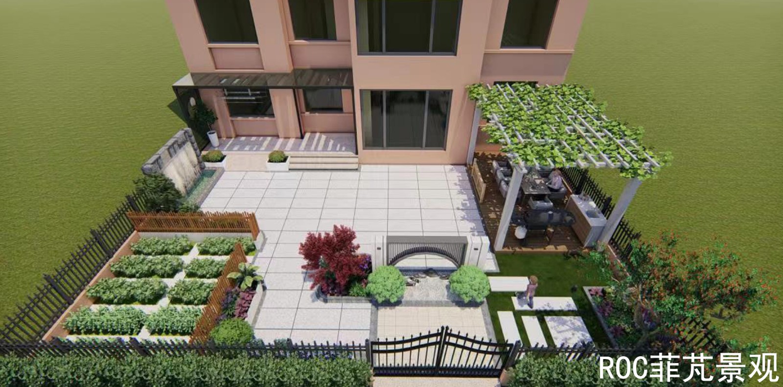 在与业主充分沟通后,根据庭院本身的结构特点,我司设计师将本案定位为现代简约的设计风格,现代风格的简约之美,采用几何线条勾勒院落整体骨架,通过水系及植物的搭配,表现院落的灵动之气,整体风格硬朗整洁而不失灵动。