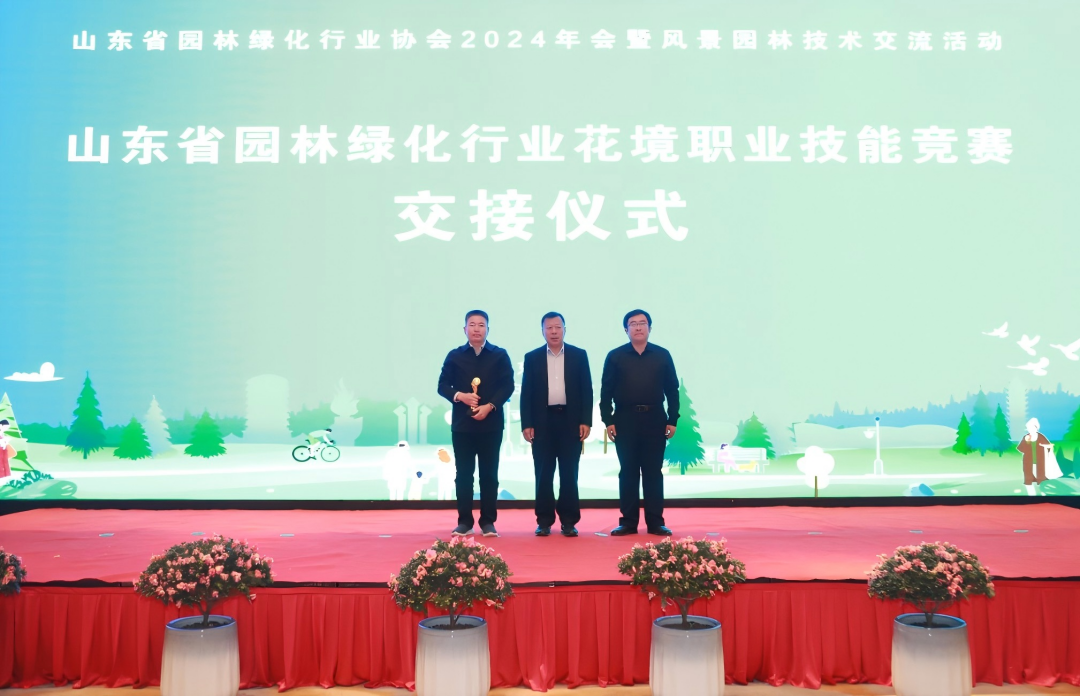 闭幕式上,举行了花境职业技能竞赛承办单位交接仪式,山东省园林绿化行业第四届花境职业技能竞赛将在济南市举办。